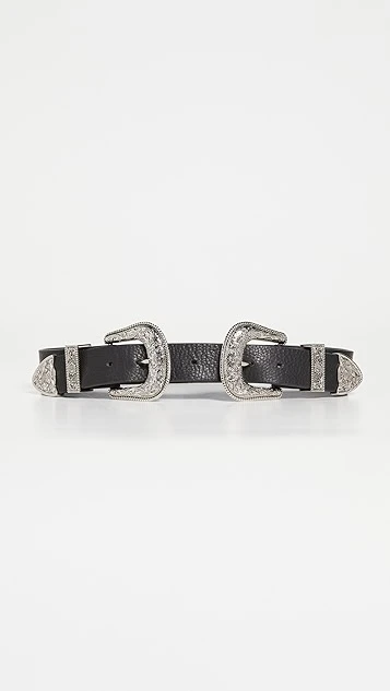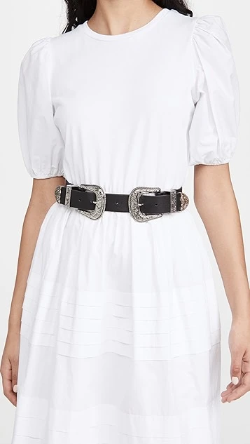 A double-buckle design on this statement-making B-Low The Belt belt provides vintage charm with a modern twist.