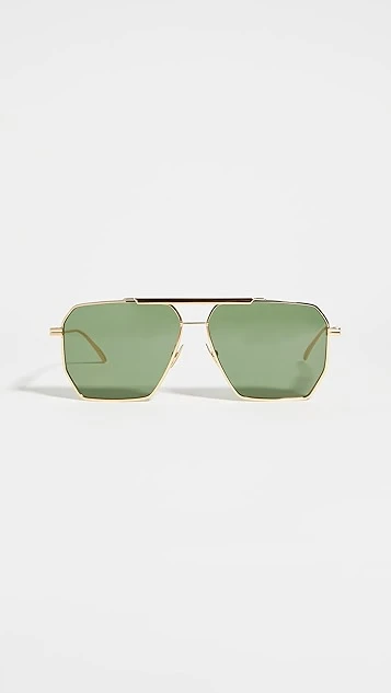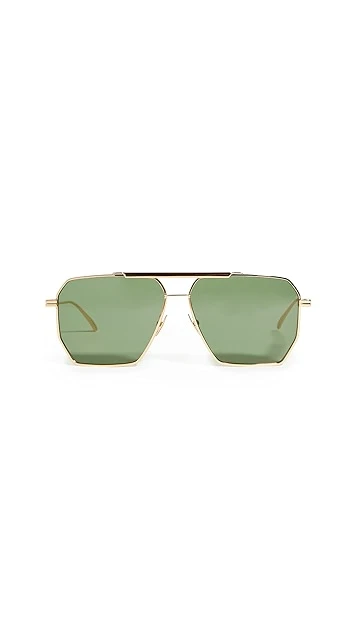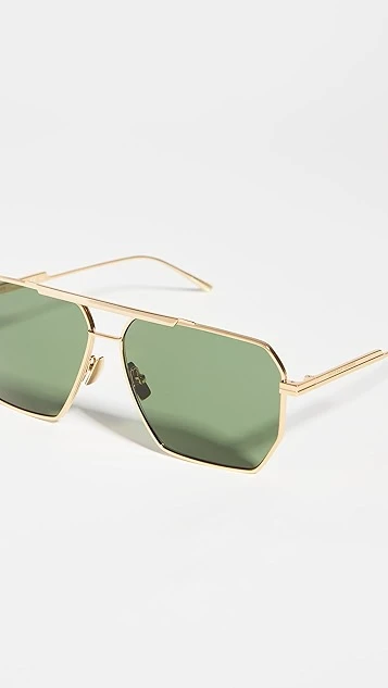 A sleek update to the classic aviator silhouette, these Bottega Veneta sunglasses feature polished, geometrically designed frames with green lenses. Wear them as an elevated addition to everyday ensembles.
