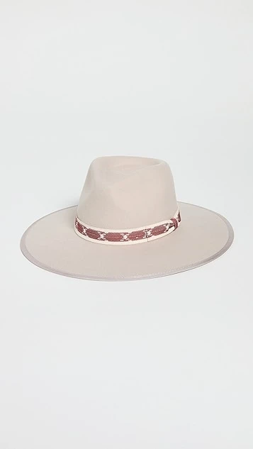 - Pinched crown with grosgrain band and trim
