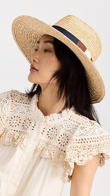A study in minimalist (yet summery) design, the Brixton Joanna hat is crafted in woven straw and plays up the clean lines with a tonal grosgrain band.