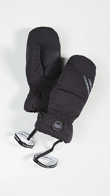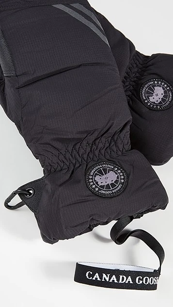 Keep the cold out with these fleece-lined Canada Goose mittens, featuring faux leather patches at the palms and the label’s signature down-and-feather fill.