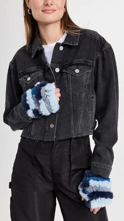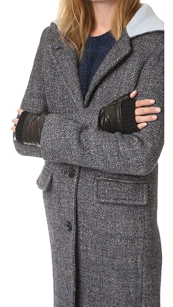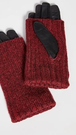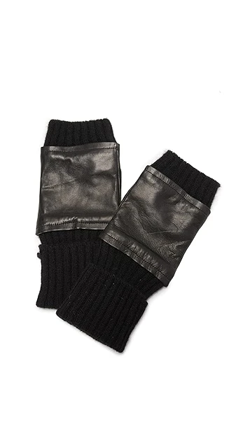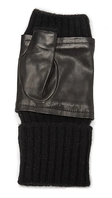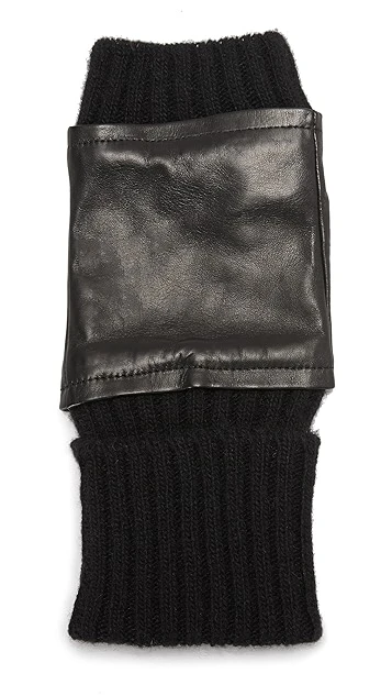 Rich leather trims these fingerless Carolina Amato gloves, adding a chic edge to the comfy silhouette.