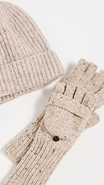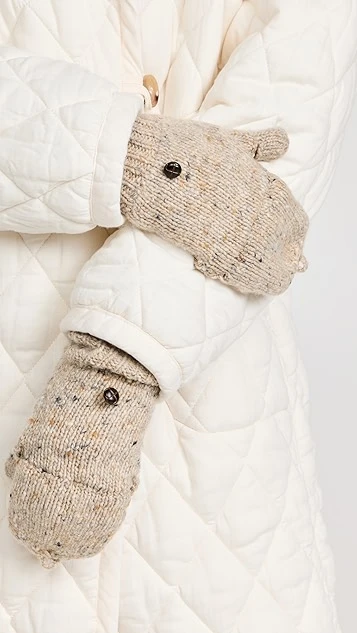 A soft wool blend with a classic oatmeal color scheme composes these convenient and convertible Carolina Amato gloves.