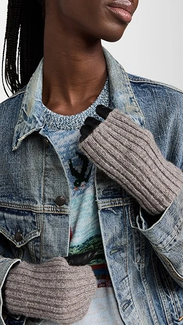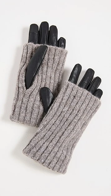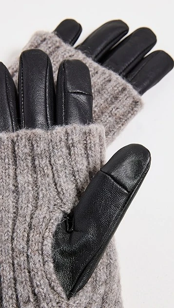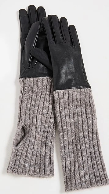 A premium pair of Carolina Amato gloves, crafted from supple black leather and outfitted with knit overlays.