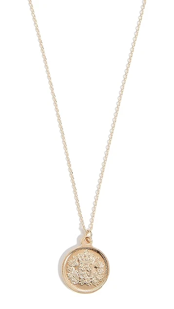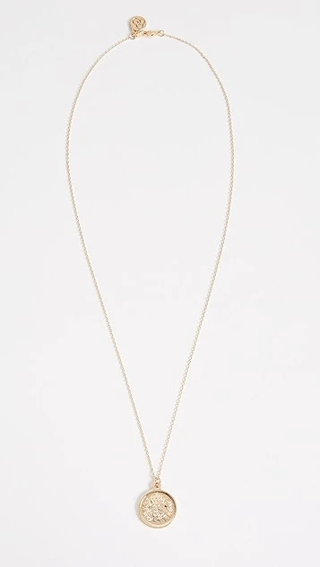 A small, etched coin pendant details this timeless Cloverpost necklace.