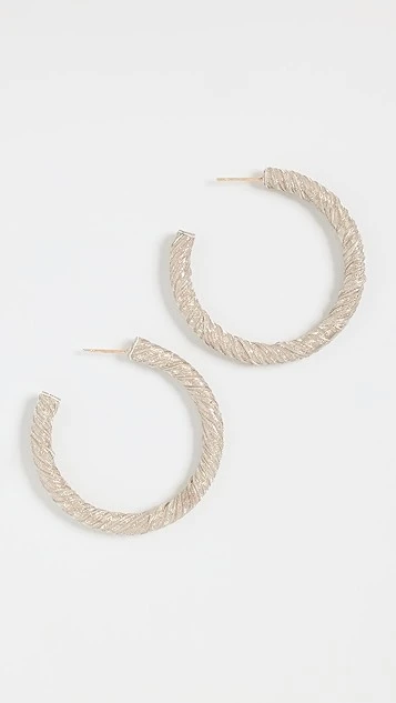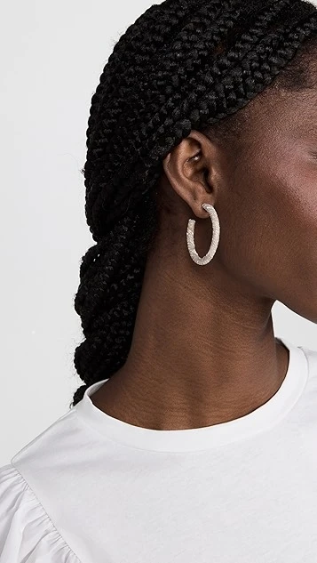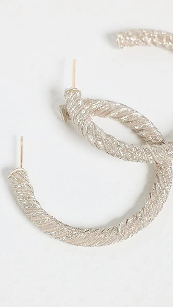 These Deepa Gurnani earrings feature a timeless hoop silhouette, and are wrapped with metallic material that adds extra shine and subtle texture.