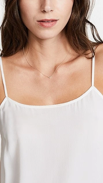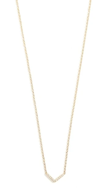 A delicate, diamond-studded chevron pendant lends minimalist elegance to this 14k gold EF Collection necklace.