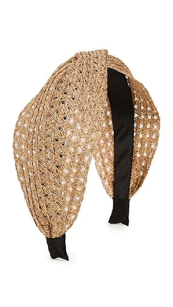 A wide Eugenia Kim headband with a subtle knot at the top, given a unique look with open-weave straw construction.