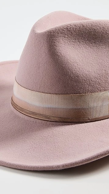 - Pinched crown with grosgrain band
