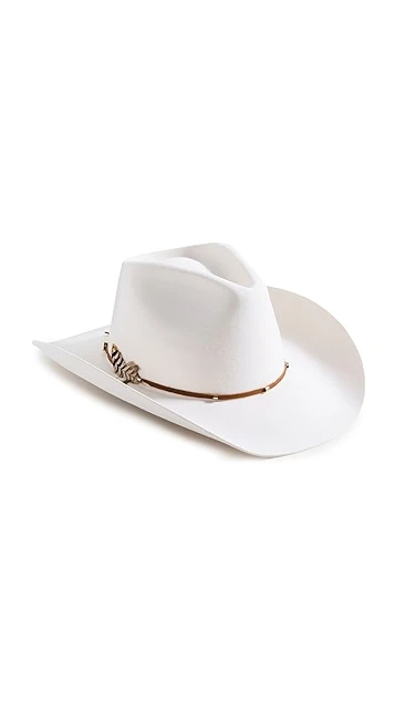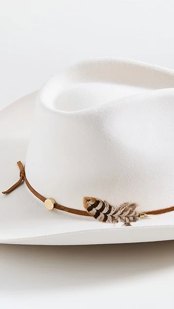 A classic addition to your accessories collection, this Freya cowboy hat is crafted from pure white felt, and is ringed with a leather band that’s punctuated with a single feather.