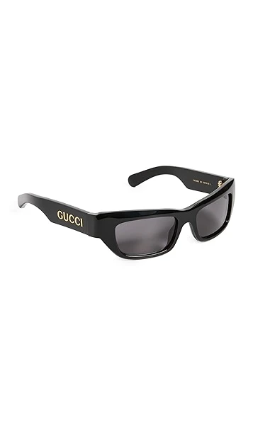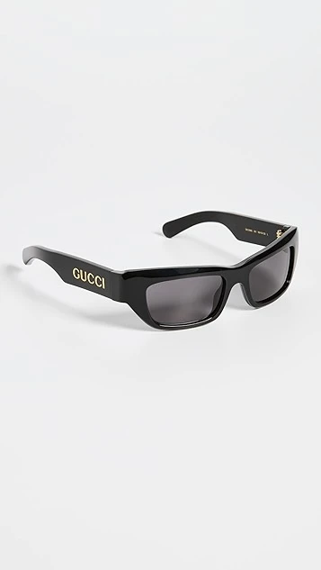 - Gold-tone logo lettering at arms