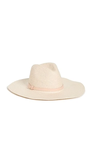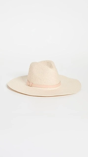 A tonal leather band circles the crown of this straw Hat Attack sun hat, which gains a touch of extra charm from a floppy brim.