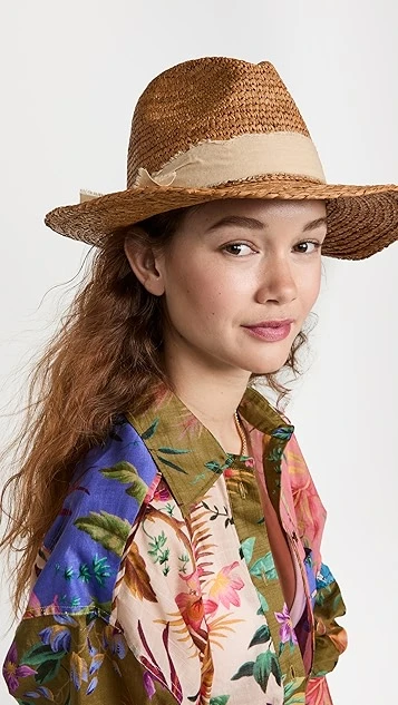 A frayed ribbon band brings a rustic, beachy touch to this classic rancher hat from Hat Attack.