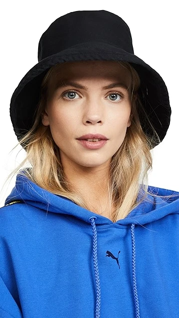 Tonal topstitching accents the floppy brim of this twill Hat Attack bucket hat.