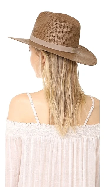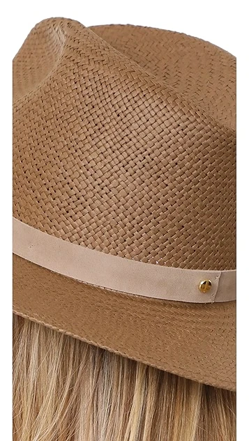 This straw Janessa Leone hat has an easy-to-pack construction, allowing it to be placed in a suitcase without losing its shape.