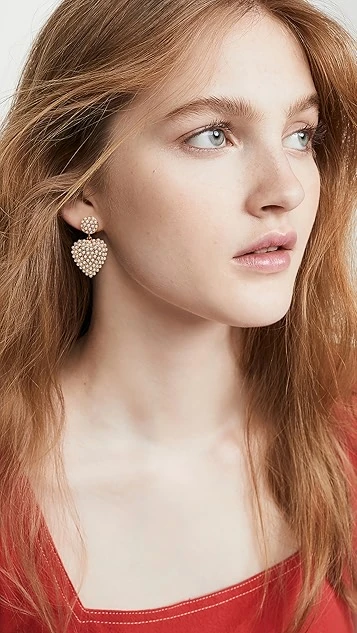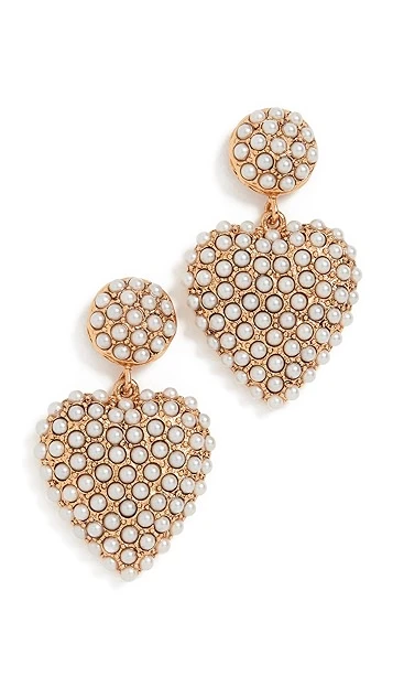 Petite imitation pearls add a cool textured look to these heart-shaped Jennifer Behr earrings.