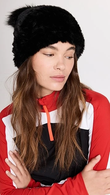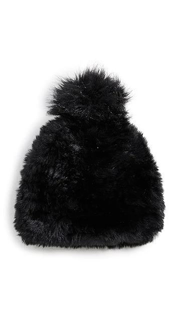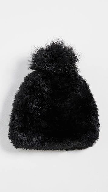 Cozy and charming, this winter-ready Jocelyn stocking cap is crafted entirely from black faux fur and topped with a plush pom pom.