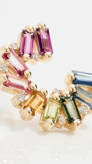 - Baguette cut rhodolite, pink topaz, salmon topaz, citrine, peridot, green envy topaz, and english blue topaz