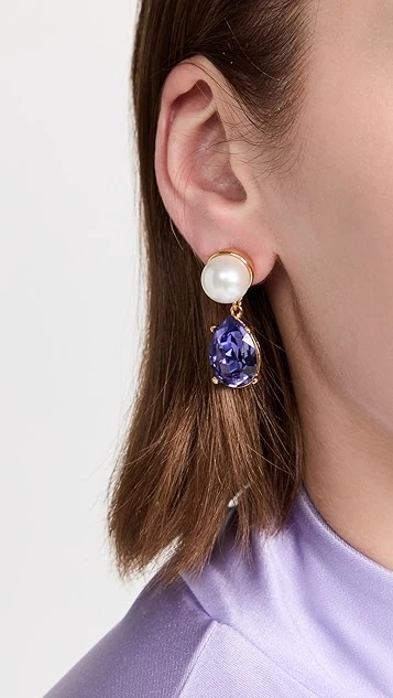 Kenneth Jay Lane Pearl And Crystal Teardrop Post Earrings
