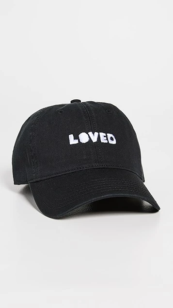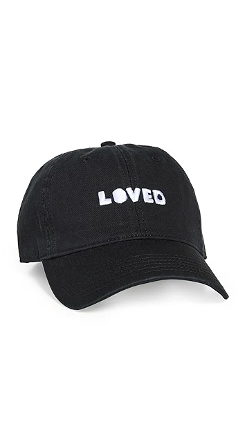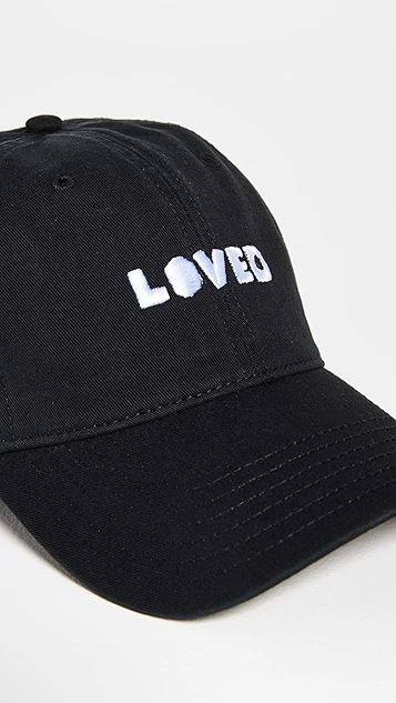 A charming everyday accessory, this Kerri Rosenthal baseball hat is crafted from dark canvas and accented with embroidered ‘Loved’ lettering.