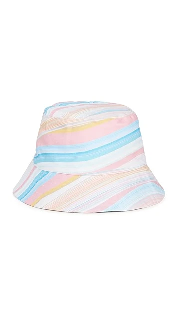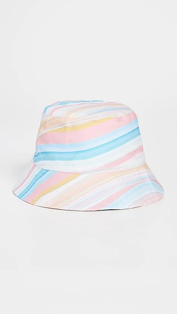 Fresh from the specialists in fun accessories at Kerri Rosenthal, this bucket hat is crafted from classic canvas and detailed with a wavy array of pastel stripes.