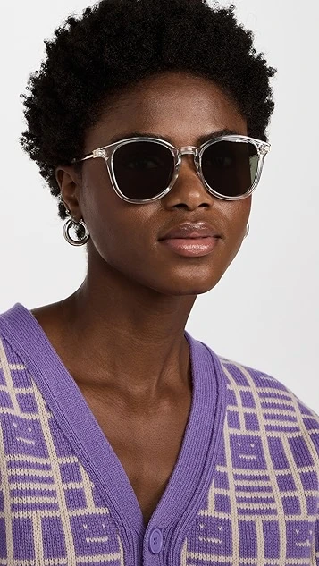Transparent acetate and gold-tone metal combine to form these cool Le Specs sunglasses, which feature a classic round-frame silhouette.