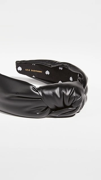 Smooth faux leather lends edgy juxtaposition to this sweetly knotted Lele Sadoughi headband.