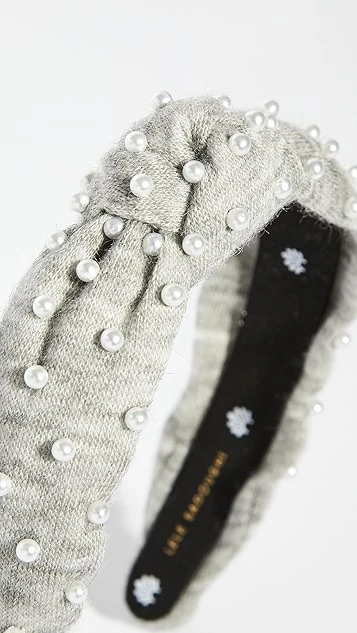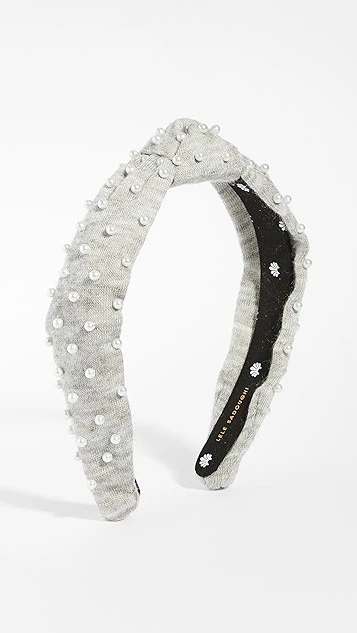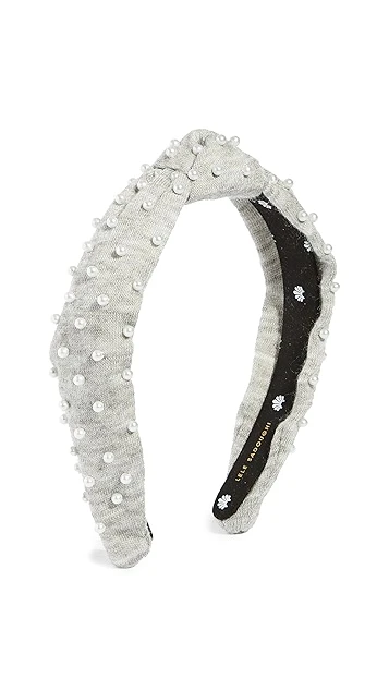 A knotted knit Lele Sadoughi headband, elegantly adorned with pearl-like beads.
