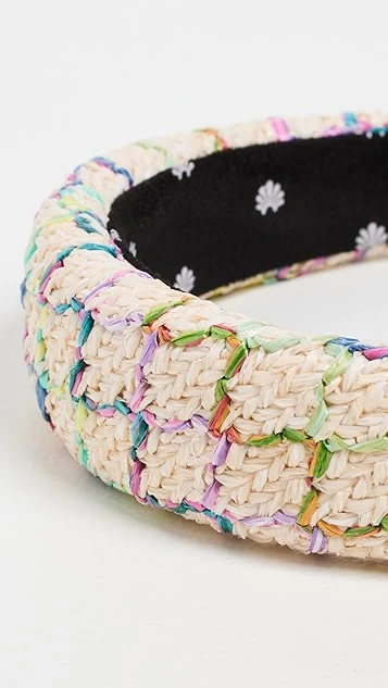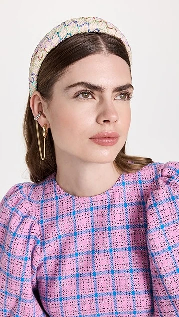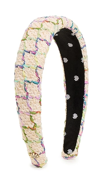Colorful strands of thread help create a grid motif across this charming Lele Sadoughi padded headband.