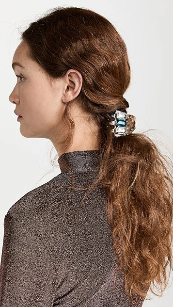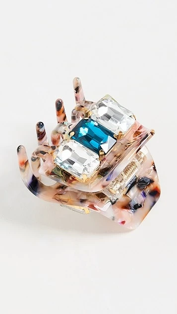 Big, shimmery crystals and colorful tortoiseshell acetate draw the eye to this LELET NY hair clip.