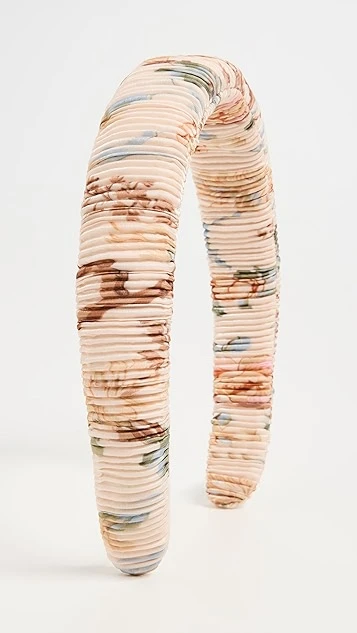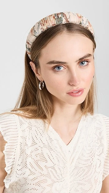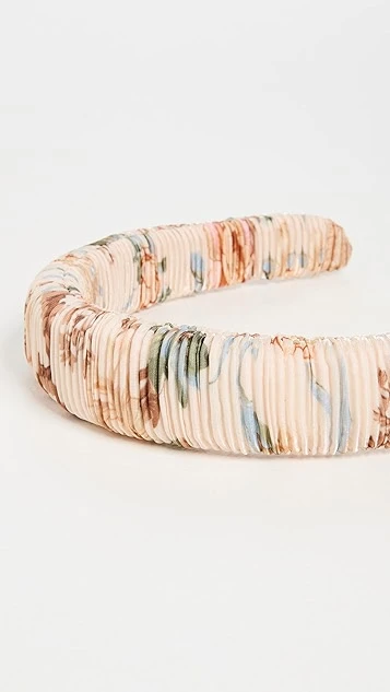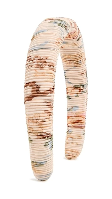 A charming finishing touch for any look, this Loeffler Randall headband is densely pleated and detailed with a toned-down floral print.