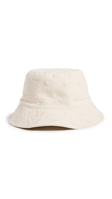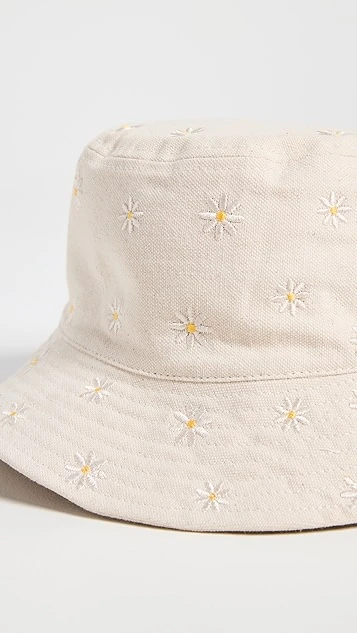 A seasonal essential becomes even more summer-friendly! This easy Madewell bucket hat is crafted from sturdy, light-colored canvas, and is embellished with a sparse array of embroidered flowers.