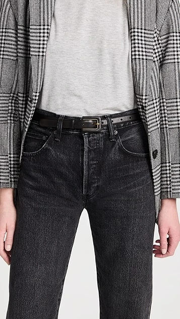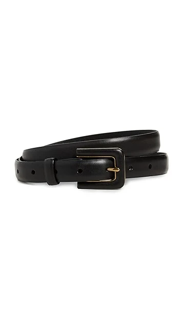 Supple black leather composes this Madewell belt, which features a covered buckle and a slim silhouette.