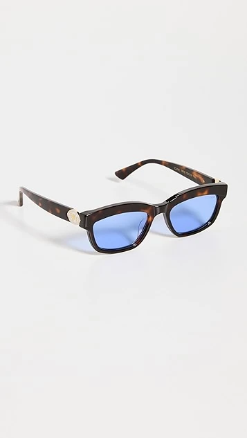 Icy blue lenses contrast harmoniously with dark-brown acetate, bringing a unique look to these Poppy Lissiman sunglasses. Logo emblems accent the temples.