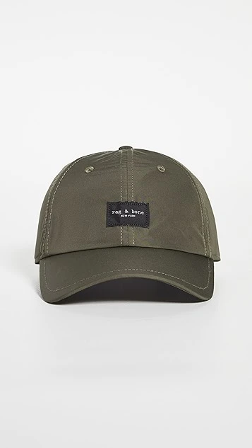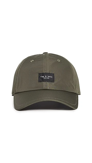 A classic Rag & Bone baseball cap, designed in an army-green hue and featuring interior mesh lining, with adjustable back strap, finished with the labels logo patch at front.