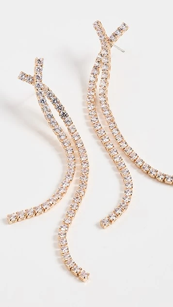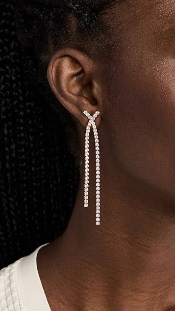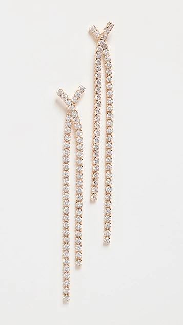 A lovely pair of drop earrings from the jewelry specialists at SHASHI, featuring a crystalline pair of crisscrossing strands.
