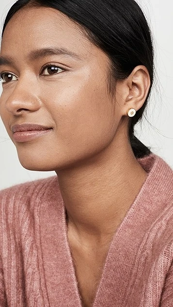 These enamel-inlaid Tory Burch stud earrings bring a signature style to an everyday accessory with the label’s instantly recognizable logo charm.